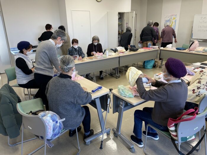 2025年12月18日(木)の午前、稲毛区ボランティアセンターで行われていた、千葉市生涯学習ボランティアの会「タオル帽子」さんの活動を見学させていただきました。