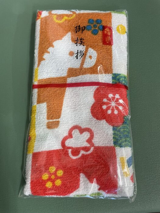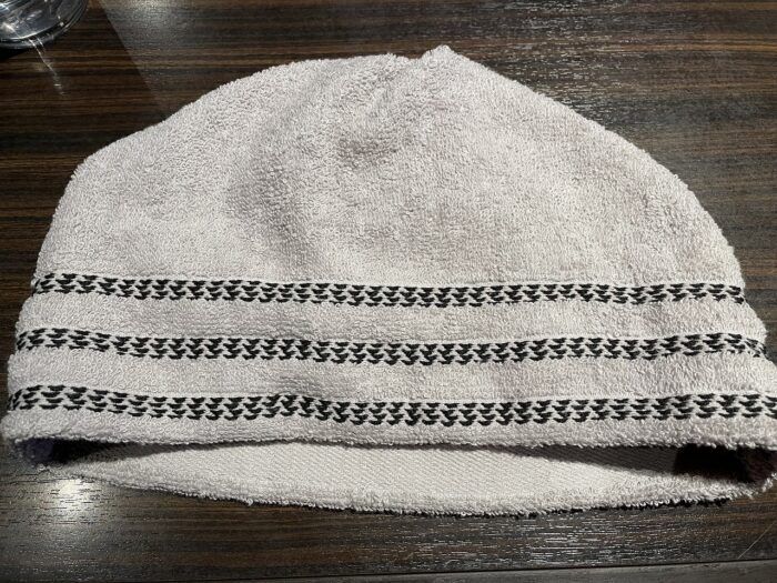 帰り際に、なんと手づくりのタオル帽子を“お土産”にいただいてしまいました!