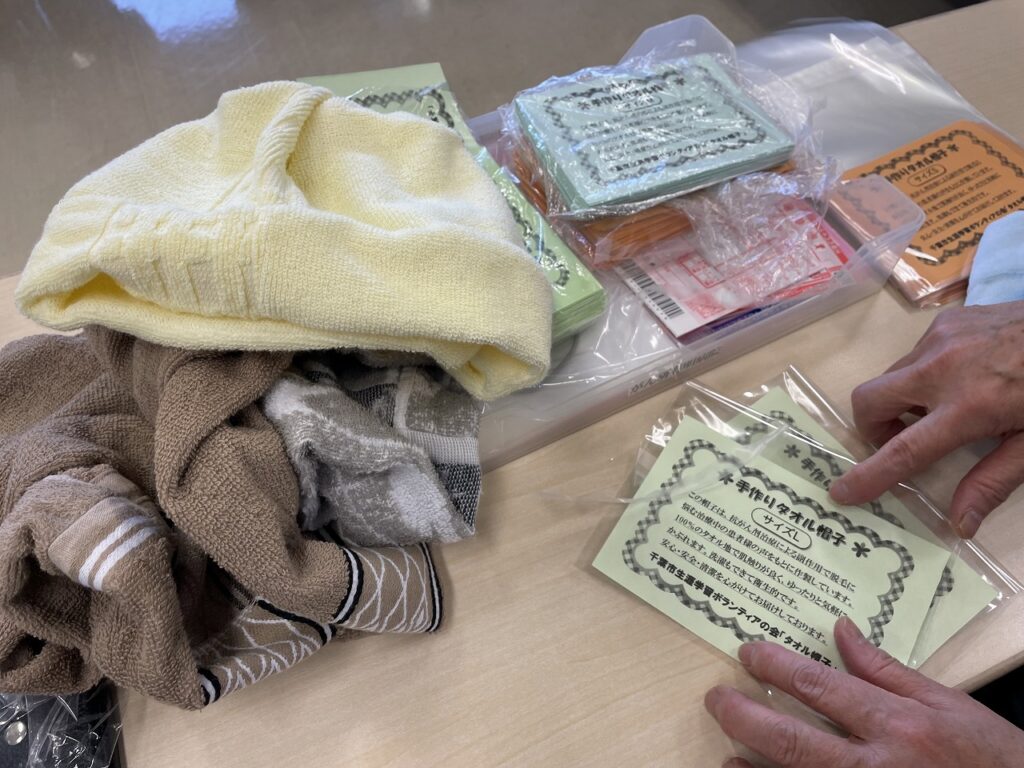 抗がん剤の副作用での脱毛に悩む患者さんの支援として、タオルでオリジナルの手縫い帽子を製作し、寄贈する活動をしている団体です。