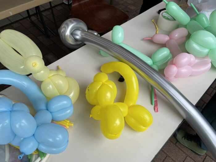 お隣のブースでは、天候不順のため縮小開催となってしまいましたが、学生サークルである「徳能雑技団」によるバルーンアートが披露されており、子どもたちの人気を集めていました。